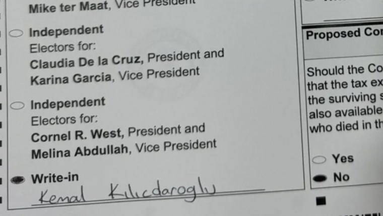 Virginia eyaletinde bir seçmenin, oy pusulasına eski CHP Genel Başkanı Kemal Kılıçdaroğlu'nun adını yazdığı görüldü.