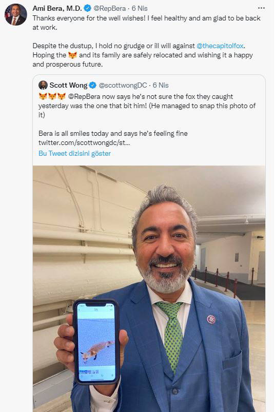 Temsilciler Meclisi’nde kongre üyesi olan Senatör Dr. Ami Bera ve medya organı Politico muhabiri Ximena Bustillo dahil olmak üzere en az 9 kişiyi ısıran kuduz tilki ve yavruları uyutuldu.
