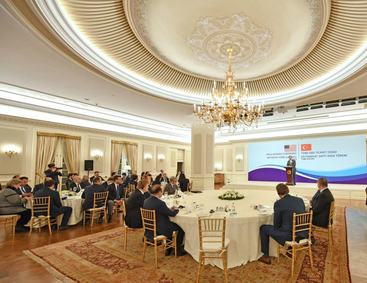 TOBB'daki programda konuşan Hisarcıklıoğlu, Türkiye-ABD'nin ticaretini iki müttefik ülkeye yakışır seviyeye çıkarmaları gerektiğini söyleyerek "Tekrar vurgulamak istiyorum. Türk ve ABD iş dünyası, 100 milyar dolarlık ticaret hedefini başarabilecek. Türkiye'de ABD'li yatırımcılar için ciddi fırsatlar var. Bu noktada, ABD'li yatırımcıları Türkiye'yi bir yatırım ve ticaret üssü olarak değerlendirmeye davet ediyorum. ABD Ticaret Odası ile bugüne kadar olduğu gibi bundan sonra da bu alanlardaki iş birliğimizi genişletmek istiyoruz" dedi.