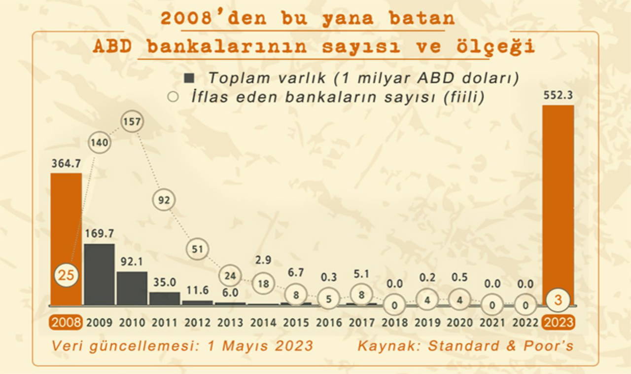2023 yılında batan ABD bankalardaki mevduatların toplamı 2008’deki mali kriz sırasında batan banka mevduatlarının toplamını aştı. Mart ayındaki iflasların ardından paniğin büyümesini engellemek isteyen Biden yönetimi Amerikalılara “güvendesiniz” mesajı vererek piyasada tsunami etkisi olmasını engellemeye çalıştı.