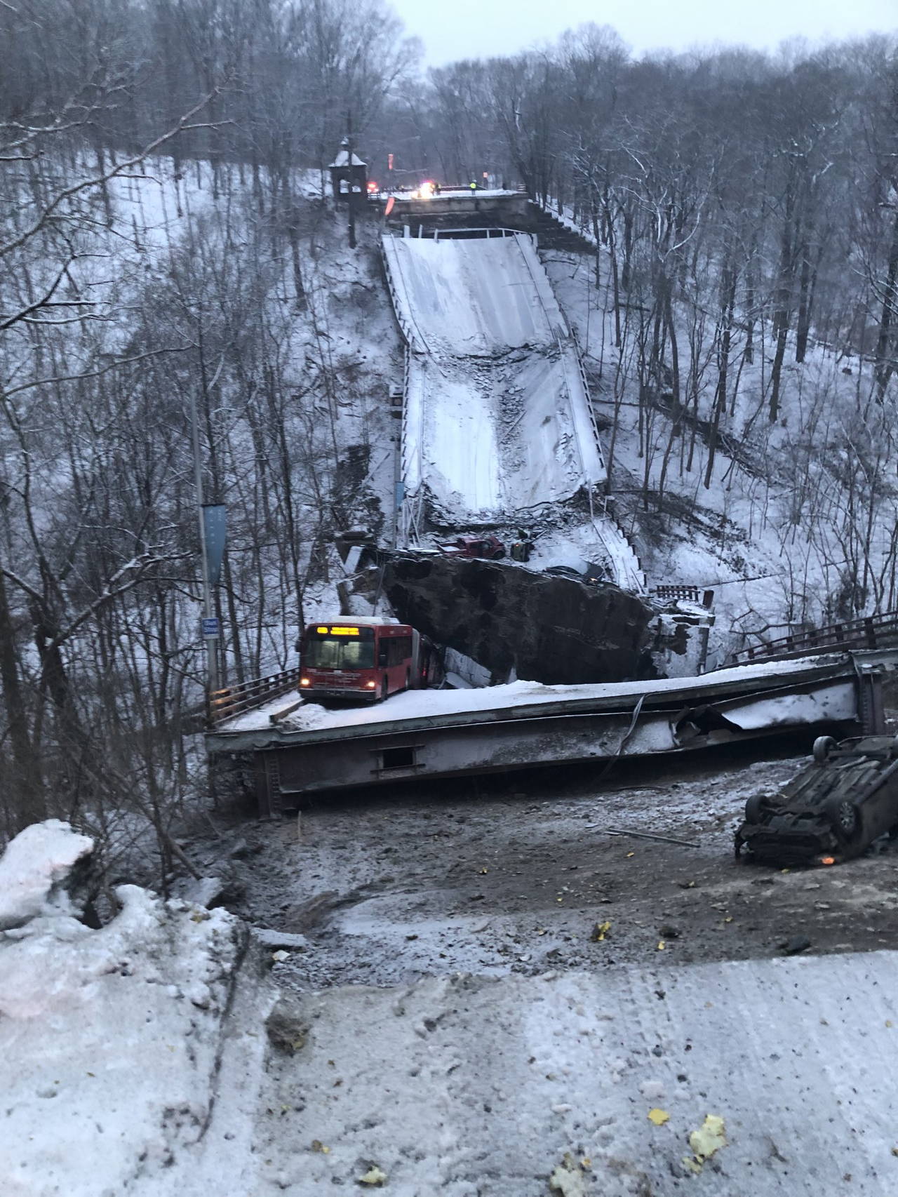 Pittsburgh Kamu Güvenliği yetkilileri bugün yaptıkları açıklamada, halk otobüsü dahil birkaç aracın geçtiği sırada köprünün çöktüğünü duyurdu.