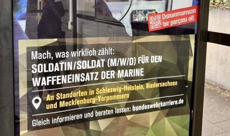 Alman Silahlı Kuvvetlerindeki (Bundeswehr) askeri personel sayısının mevcut 183 binden 2031'e kadar 203 bine çıkarılması hedefine ulaşmak için hazırlanan afişlerde Türkçe "Donanmamızın Bir Parçası Ol" ifadesiyle adayların başvuruda bulunması isteniyor.