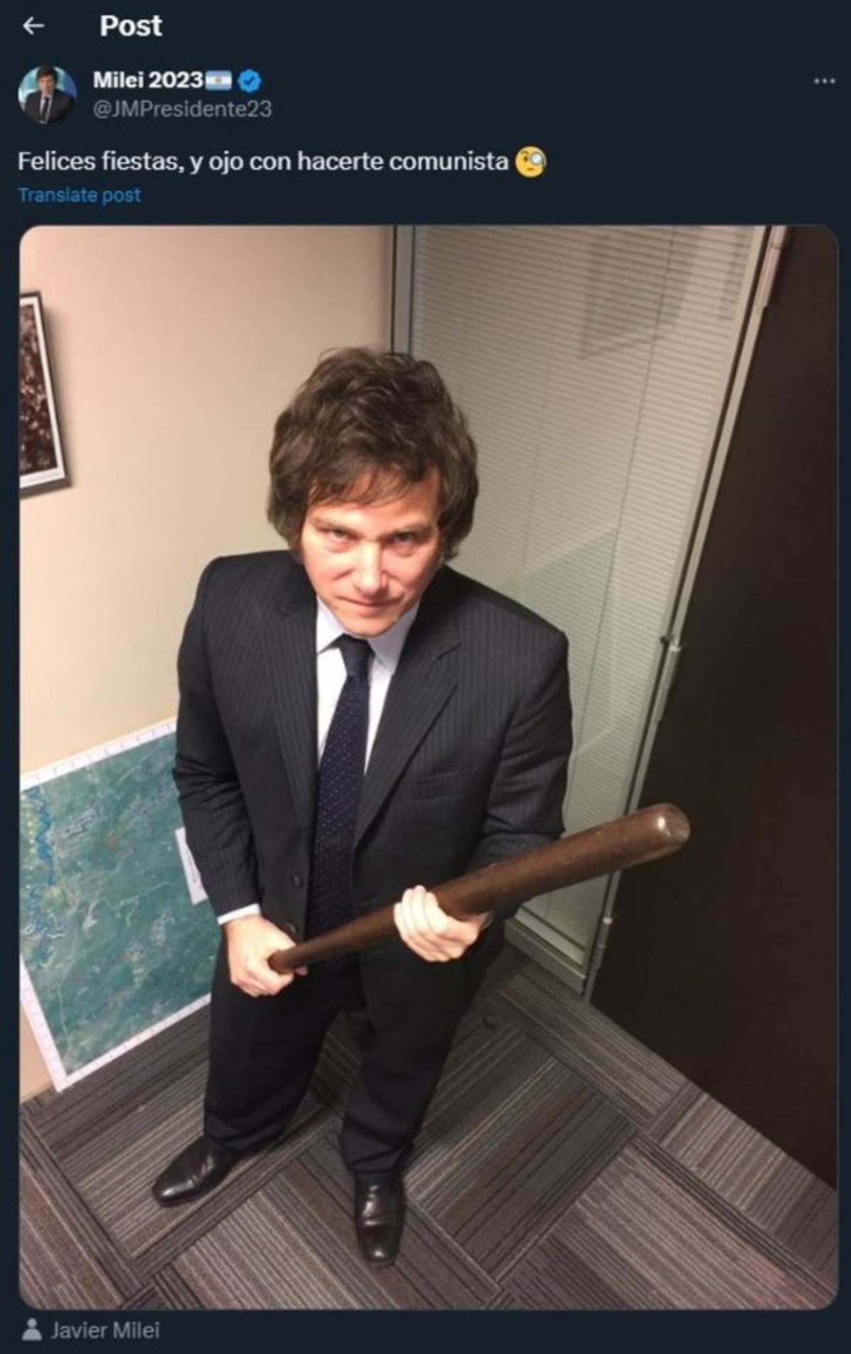 The Telegraph'ın haberine göre Milei, söz konusu fotoğrafı, "İyi bayramlar, komünist olmamaya dikkat edin" mesajı ile paylaştı.