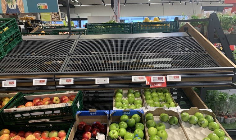 Brüksel’de bir marketin raflarından paylaşılan fotoğrafta raflarda çok az ürün kalması; "Çiftçilerin, yol kesme ve limanları abluka altına alma yönündeki eylemlerinin başarılı olduğu" şeklinde yorumlandı.