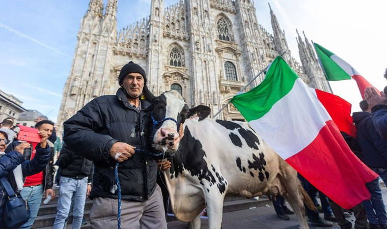 İtalyan çiftçiler, bu hafta Roma'da traktörleriyle şehir turu atarak gövde gösterisi yaparken, kuzeydeki meslektaşları da Milano sokaklarında bir ineği yürüttü. Protesto liderlerinden Danilo Calvani, ‘’Perşembe gününden itibaren seferberlik başlayacak’’ dedi.