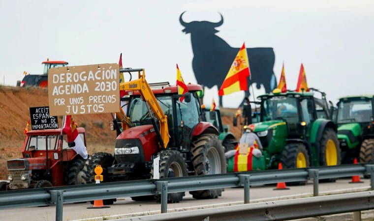 İspanyol çiftçiler, Madrid, Katalonya, Andalucía, Valencia, La Rioja, Castilla-La Mancha ve Castilla y León bölgelerinde yolları kesti, Málaga Limanı'nı abluka altına aldılar ve Valladolid'deki büyük bir toptancı pazarına erişimi engellediler. Asıl protestolarının Perşembe günü başlayacağını ve 22 Şubat'a kadar süreceğini duyurdular.