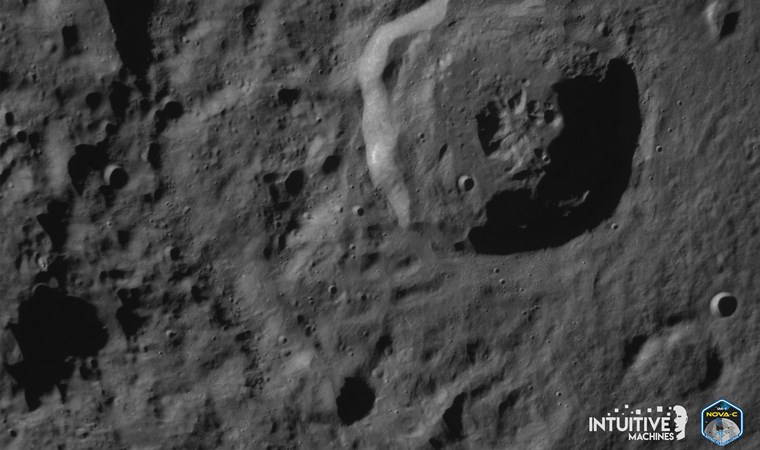 Intuitive Machines, uzay aracının planlanan iniş bölgesinden uzakta bir alanda Ay'daki Schomberger kraterinin geniş görüş alanlı bir görüntüsünü çektiğini ifade etti. Görüntü hakkında yapılan açıklamada, “22 Şubat 2024'te Intuitive Machines'in Odysseus Ay aracı, Ay'daki Schomberger kraterinin geniş görüş alanlı bir görüntüsünü, planlanan iniş bölgesinden yaklaşık 200 km uzakta, yaklaşık 10 km yükseklikte yakaladı” denildi.