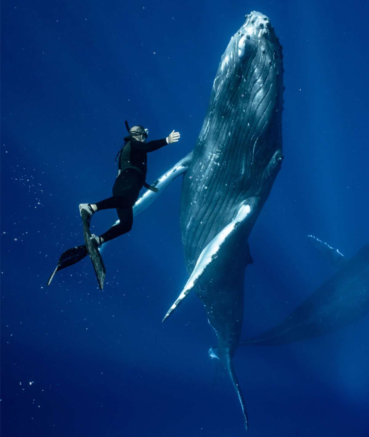 Kambur balina (Megaptera novaeangliae) ve dalgıç (temsili)