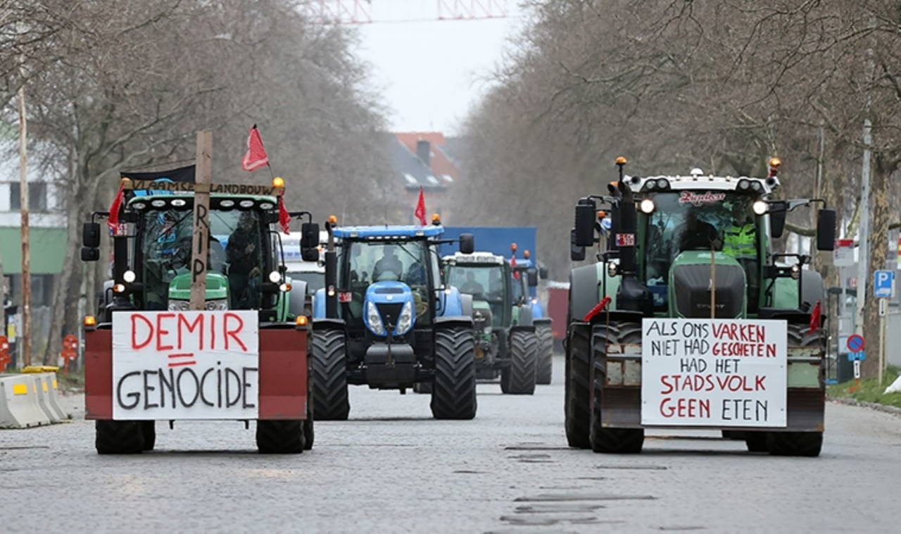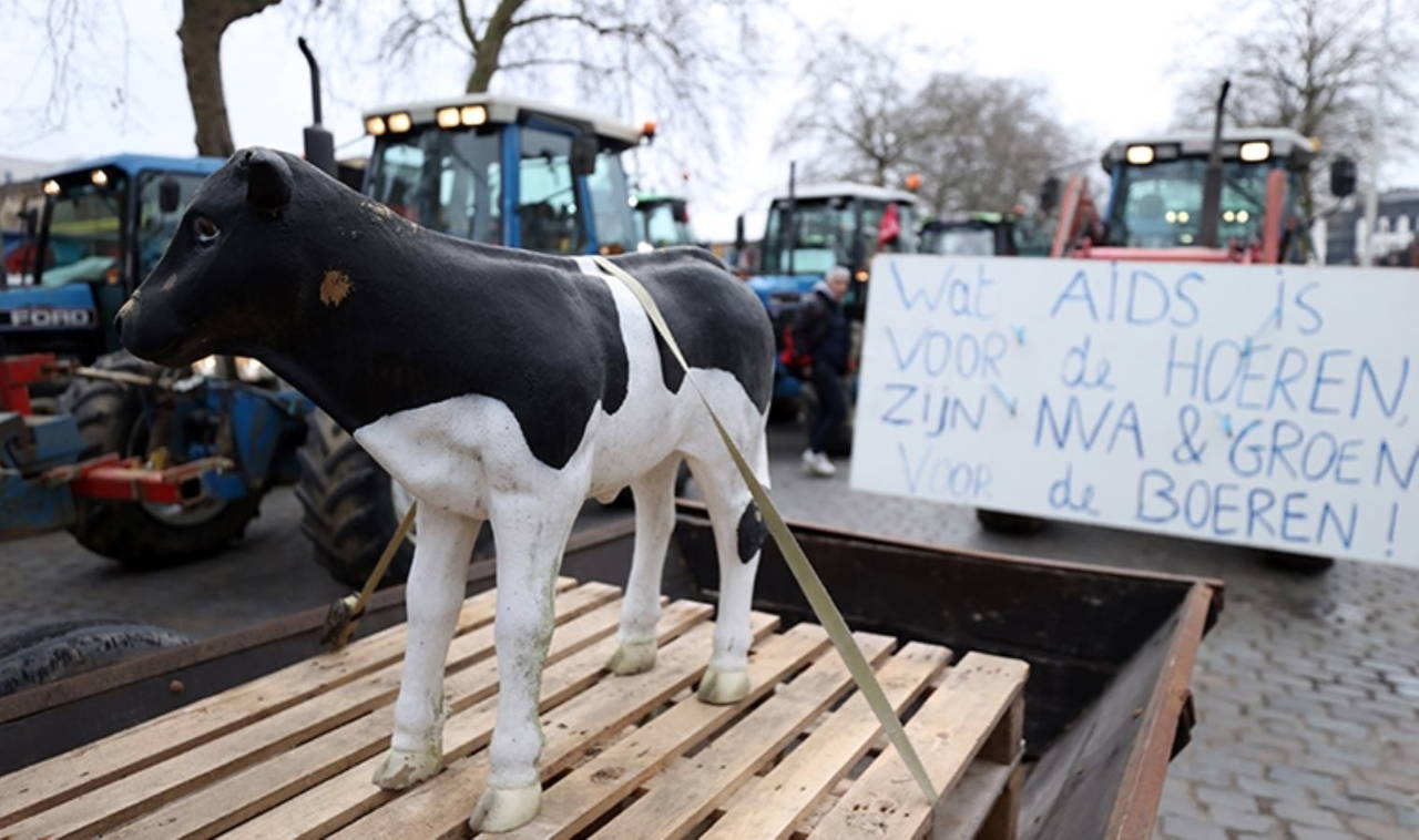Flaman Bölgesi hükümetinin tarım sektöründe 2025 yılına kadar nitrojen (azot) salımını sınırlama planına karşı çıkan göstericiler, "Çiftçi yoksa gıda ve gelecek yok" yazılı afişler astı.