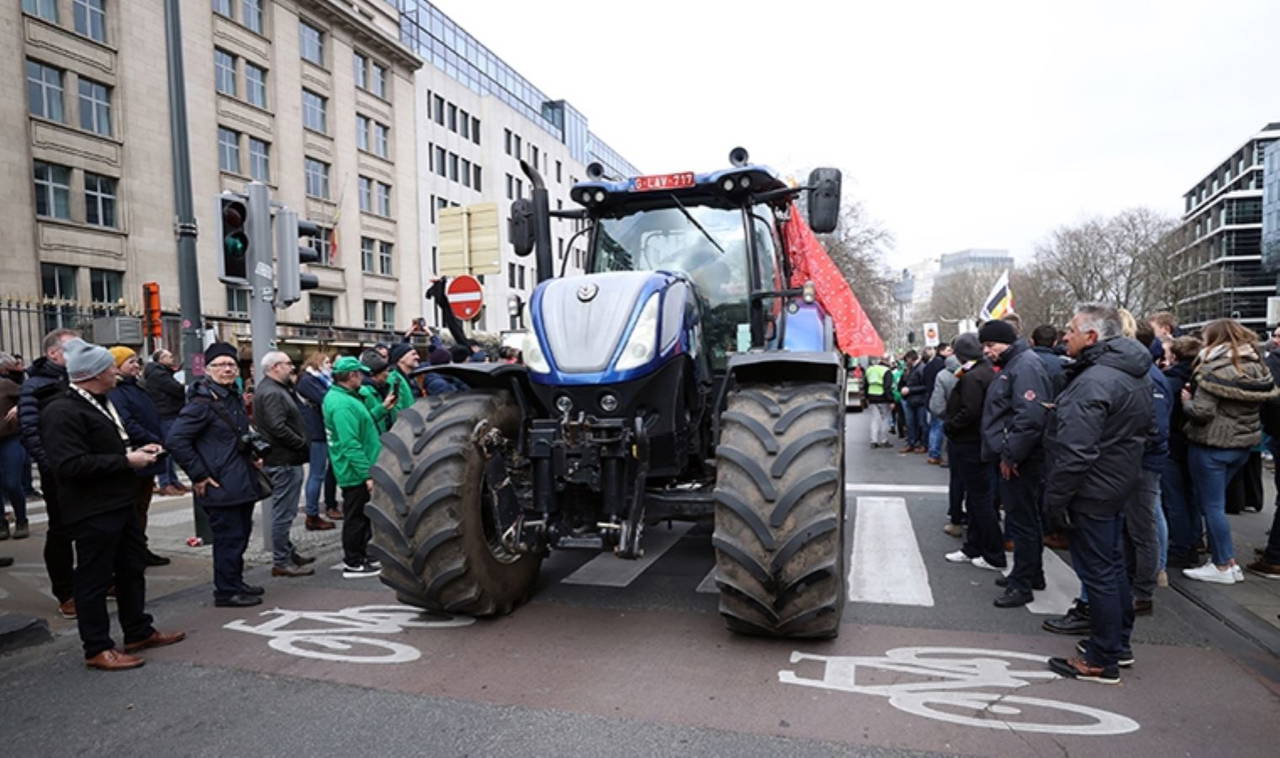 Yaklaşık 2 bin 500 traktörle gelen protestocular, Brüksel'in merkezindeki Arts Loi Caddesi'nde buluştu. Traktörlerini caddeye park eden ve trafiği kesen çiftçiler sloganlar attı.