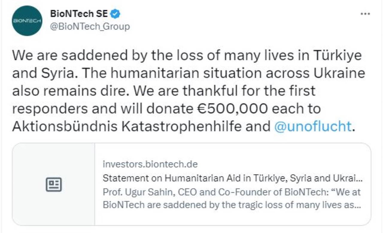 “BioNTech olarak Türkiye ve Suriye'yi vuran depremler