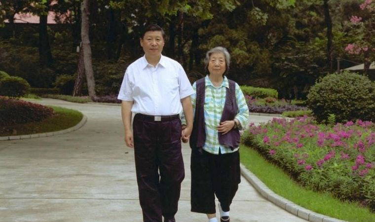 Annesi Qi Xin ile yürüyüş yapan Xi Jinping. (Fotoğraf: Xinhua)