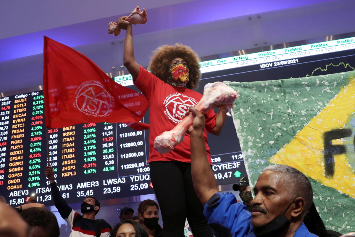 Aşırı sağcı Devlet Başkanı Jair Bolsonaro yönetiminde enflasyonun vurduğu Brezilya'da artan ekonomik eşitsizliği protesto etmek için gösterciler, Sao Paulo Menkul Kıymetler Borsası'nı işgal etti.