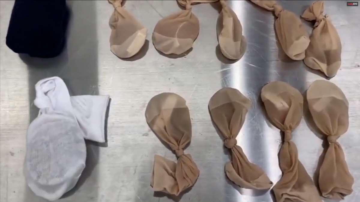 Görevli memurlar, ismi açıklanmayan kişiyi durdurduklarında, çorap ve taytlara sarılmış sürüngenleri görünce şoke oldu.