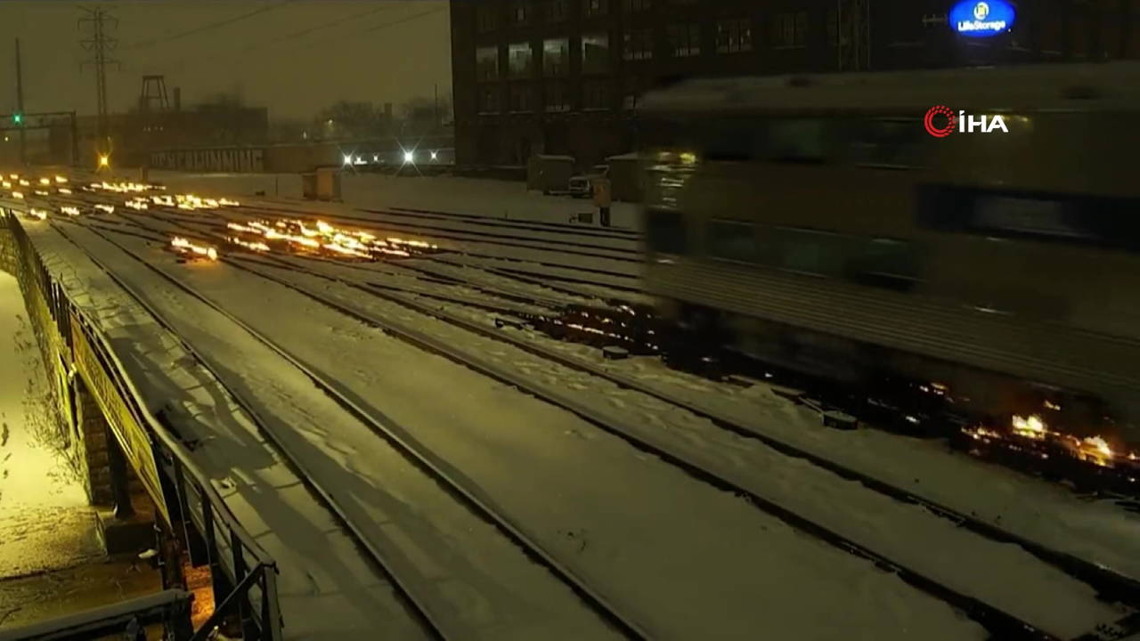 ABD’nin Illinois eyaletine bağlı Chicago kentinde tren raylarının buz tutmasını önlemek amacıyla dikkat çeken bir yönteme başvuruldu.