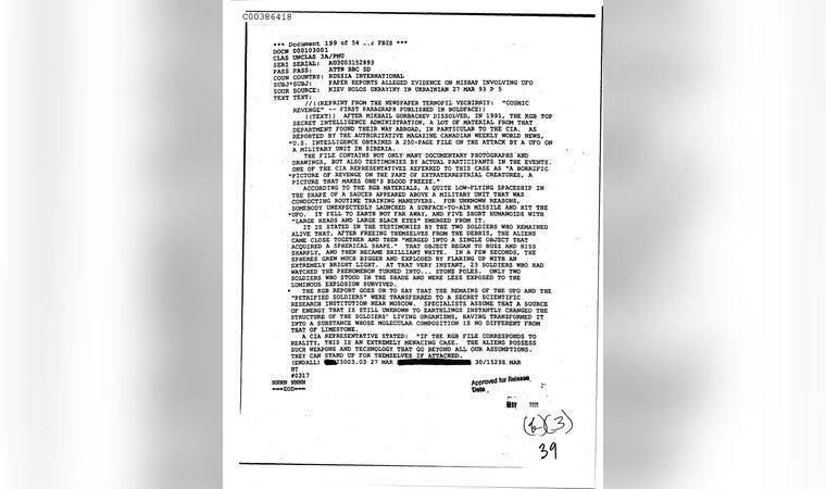 Amerikan Merkezi Haberalma Teşkilatı'nın (CIA) gizliliğini kaldırdığı 250 sayfalık KGB raporu, Soğuk Savaş döneminde Sovyet askerleri ile bir UFO arasında yaşandığı iddia edilen ürkütücü bir olayı ortaya çıkardı.