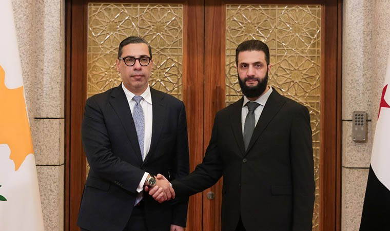 Suriye'de Geçiş Hükümeti'nin Cumhurbaşkanı Colani, bugün Şam'da Güney Kıbrıs Rum Yönetimi'nin Dışişleri Bakanı Kombos ile bir araya geldi. Suriye'nin resmi haber ajansı SANA'nın haberinde Colani ve Suriye Dışişleri Bakanı Esad Şeybani'nin Bakan Kombos başkanlığındaki üst düzey heyeti kabul ettiği belirtildi.