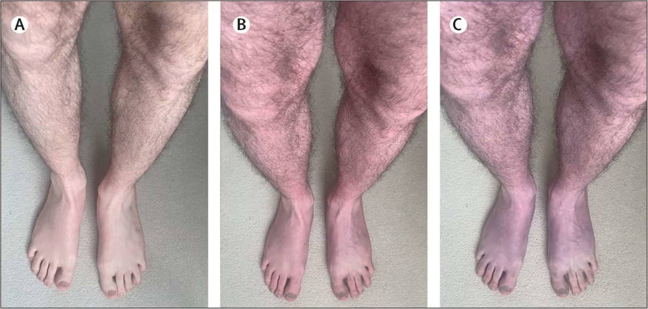Ayakta dururken bacaklarının giderek ağırlaştığı ve "karıncalı, kaşıntılı ve koyu renkli" hale geldiği belirtilen adamda, zaman zaman ayaklarında bir kızarıklığın ortaya çıktığı, ancak uzandığında "gizemli" semptomların kaybolduğu görüldü.
