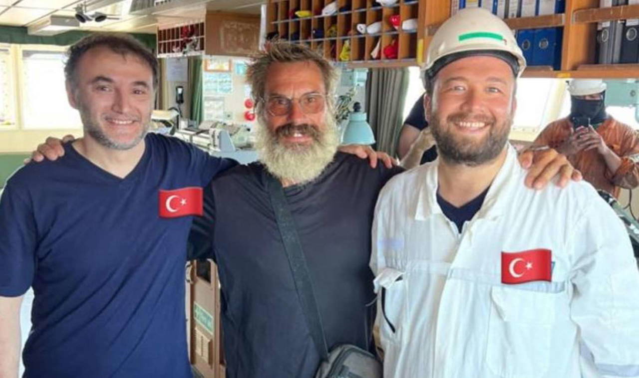 Sağlık durumunun iyi olduğu aktarılan Fransa vatandaşı, kamera kaydı alan Türk denizcilere poz verdi.