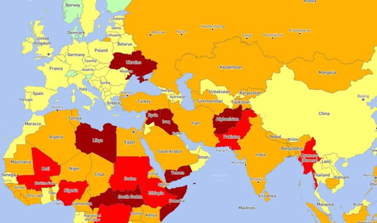 Ukrayna, Suriye, Irak, Yemen ve Güney Sudan gibi çatışma bölgeleri ise 'yüksek risk' grubunda yer alıyor.