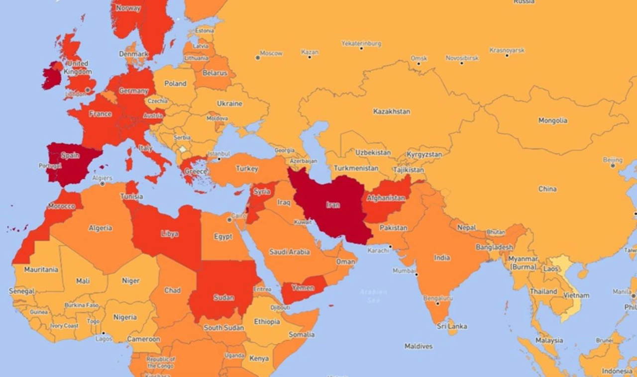 Söz konusu haritalarda ülkeler, tehlike seviyelerine göre renklendiriliyor.