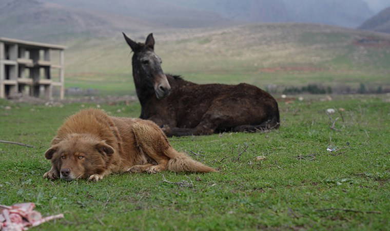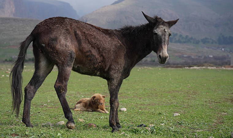 Mustafa, artık iki yakın dost olan katır ile köpeğe her gün yiyecek verdiklerini ve koruyup kollamaya çalıştıklarını söyledi.
