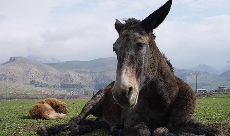 Bir sokak köpeğinin bacağı sakatlanan ve sahipsiz kalan katırla ilgilenmeye başladığını belirten Mustafa, köpeğin katırın yanından hiç ayrılmadığını ve ikilinin sürekli bir arada olduğunu ifade etti.