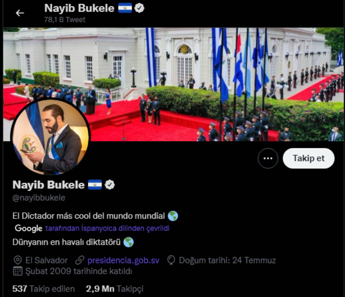 Son haftalarda El Salvadorluların sokaklara dökülerek politikalarını protesto ettiği Devlet Başkanı Bukele, Twitter hesabındaki profil tanımını değiştirdi.