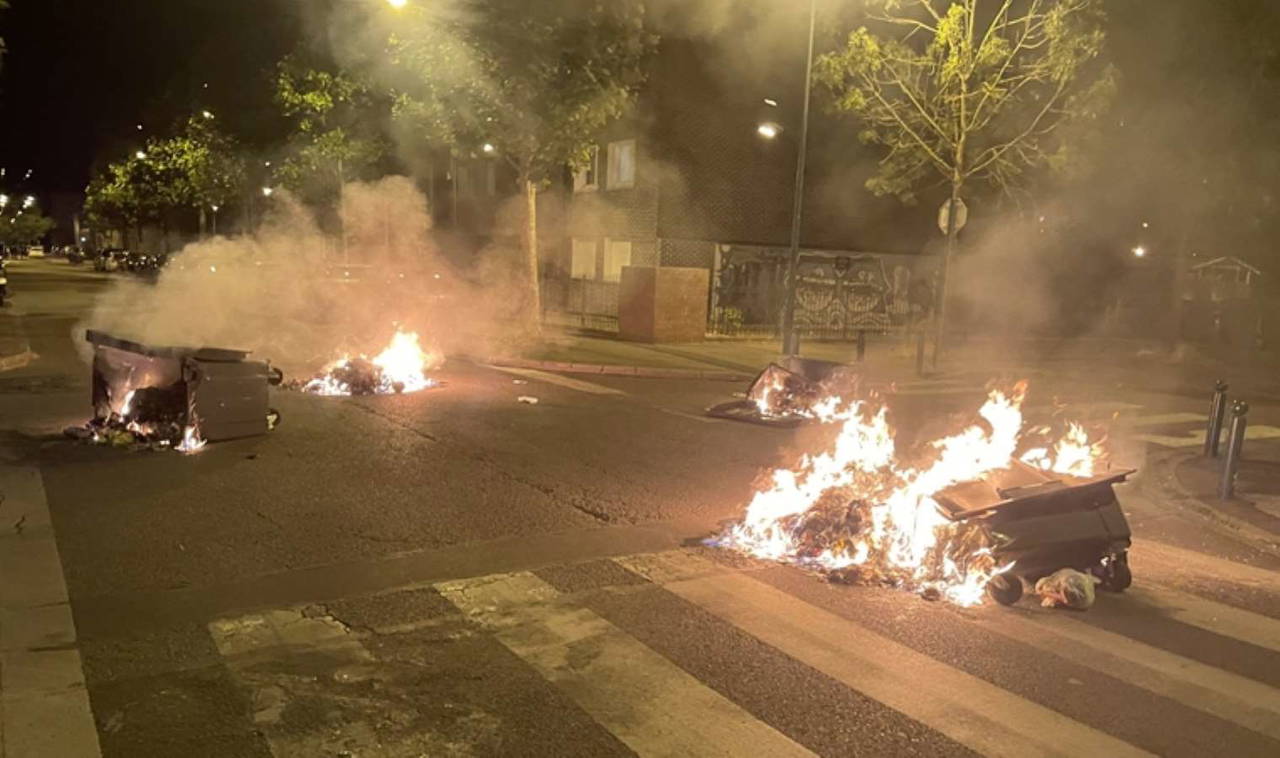 Olaya tepki gösterenler Nanterre, Suresnes, Mantes-la-Jolie gibi farklı kentlerde sokaklara inerek, çöp bidonlarını ve araçları ateşe verdi.