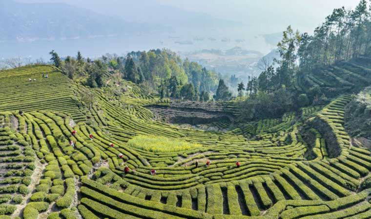 - Çin'in Hubei eyaletinin Zigui ilçesinde yer alan Maoping kasabasındaki bir çay tarlasında çay yaprakları toplayan işçiler.