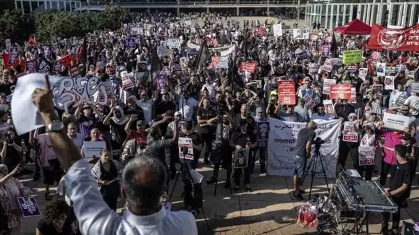 Tel Aviv'deki sembolik Habima Meydanı'nda toplanan yaklaşık 2 bin gösterici, "Soykırımı durdurun", "Gazze'den Cenin'e çocukları öldürmeyin", "Açlık savaş suçu bunu engelleyin" yazılı pankartlar taşıdı.