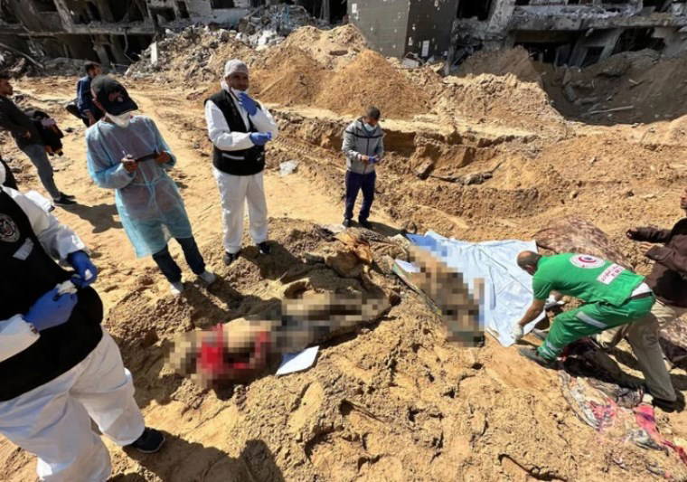Hastanenin avlusunun çeşitli yerlerinde onlarca çürümüş, yanmış, kesilmiş, toplu veya tek başına gömülmüş cesede rastlandığını bildiren sağlık kaynakları, hastanenin avlusunda ve çevresinde arama çalışmalarını sürdürdüğünü, gömülü cenazelerin sayısının kesin olarak belirlenmesinin henüz mümkün olmadığını anlattı.