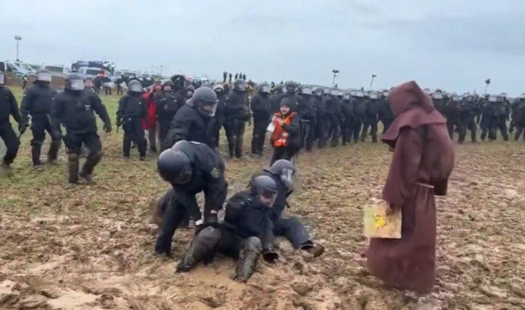 Almanya'nın Kuzey Ren Vestfalya (KRV) eyaletinde "linyit köyü" olarak bilinen Lützerath'ta polisin bölgeden çıkarmaya çalıştığı, maden sahalarının genişletilmesine karşı 2,5 yıldır mücadele eden çevreci aktivistlere destek vermek için komşu Keyenberg köyünde yaklaşık 35 bin kişi toplandı.