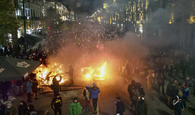 Gürcistan’da Başbakan İrakli Kobakhidze hükümetinin AB’ye katılım müzakerelerini 2028 yılına kadar askıya alma kararına karşı düzenlenen protestolar ikinci günde devam etti.