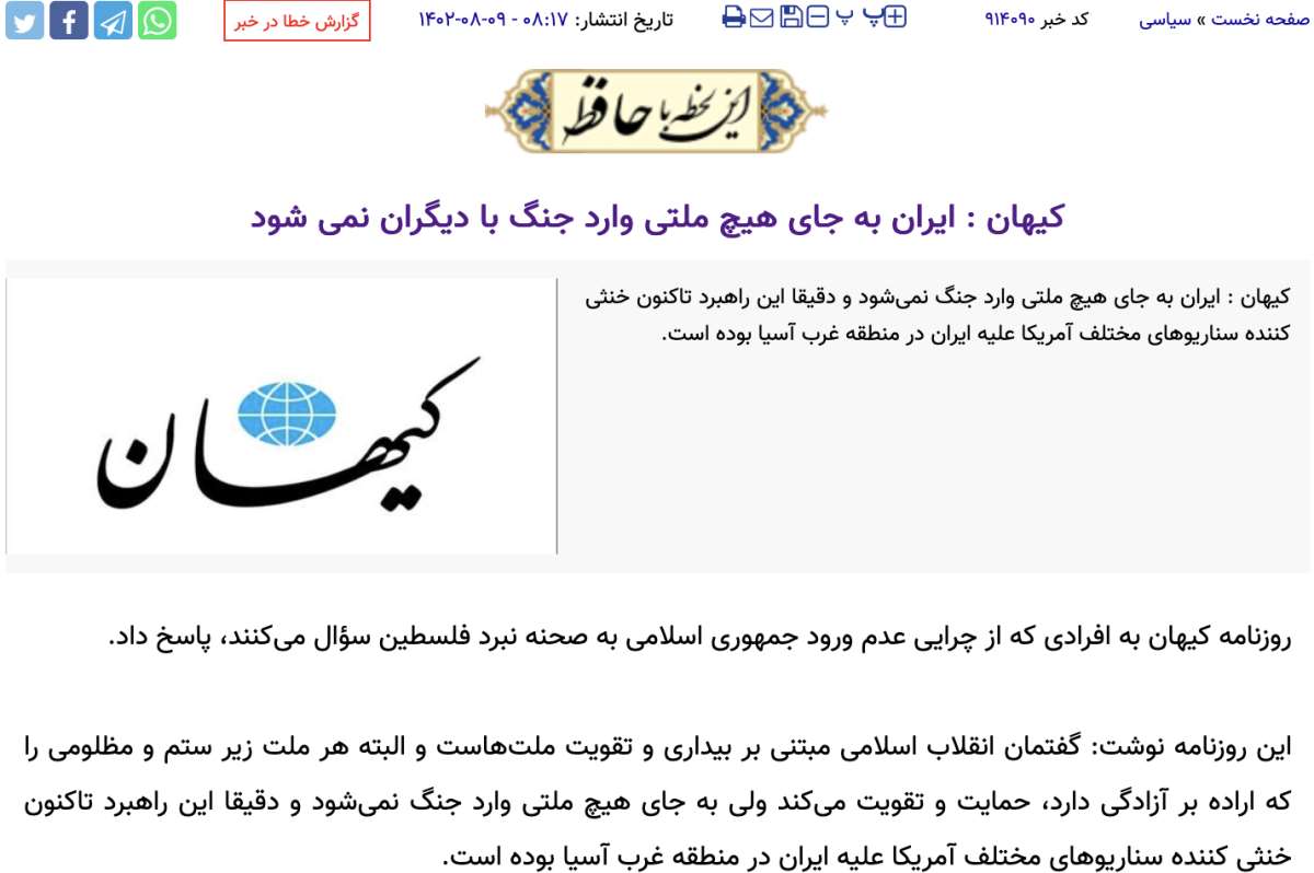 İran lideri Hamaney'in imtiyaz sahibi olduğu ve genel yayın yönetmeni de Hamaney tarafından atanan gazetede yayınlanan editöryel yazıda, İran'ın "hiçbir millet için savaşa girmeyeceği" kaydedildi.