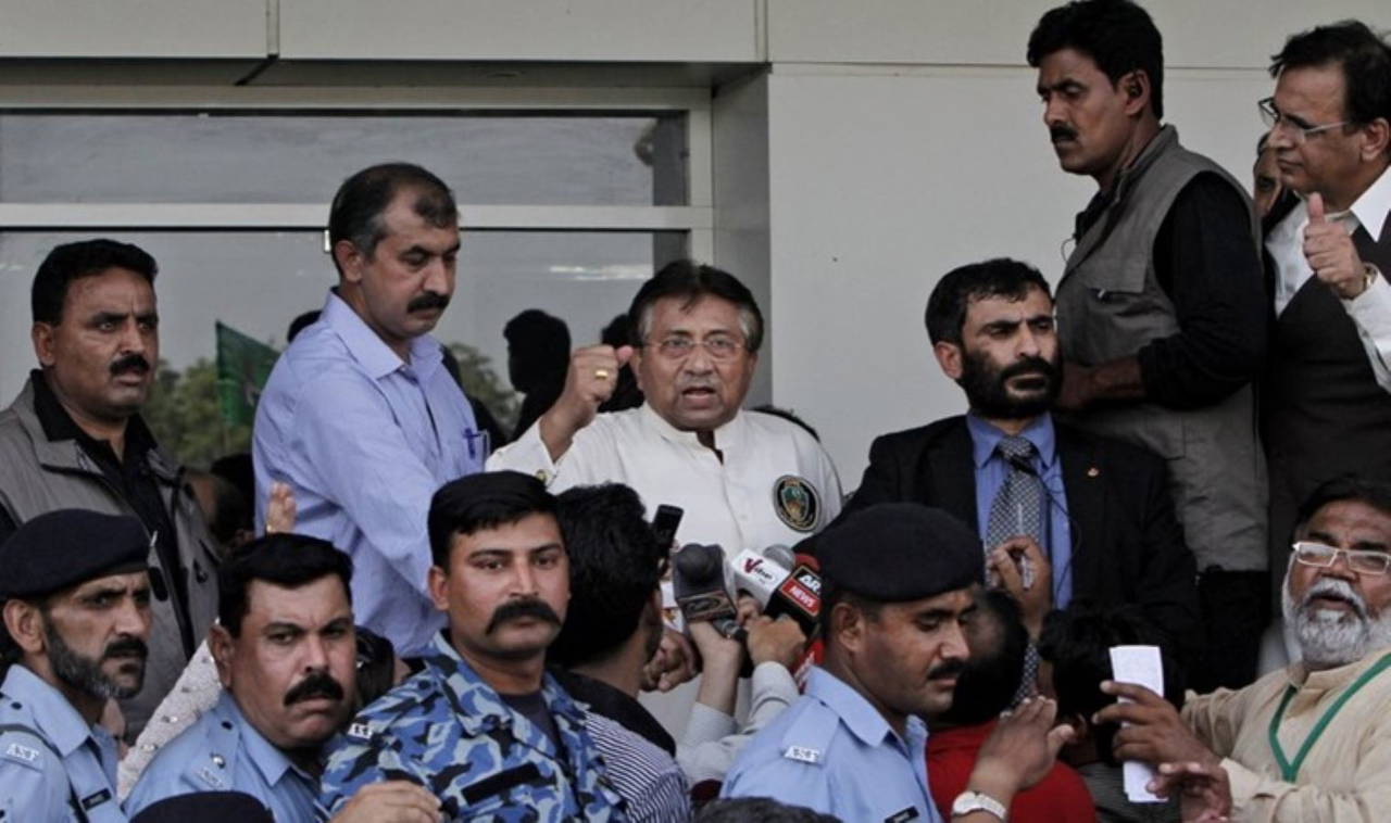2013'te genel seçimlere katılmak için Pakistan'a geri döndü, ancak yüksek mahkemenin Benazir Butto suikastına karıştığı iddiasıyla kendisi hakkında tutuklama emri çıkarması üzerine diskalifiye edildi.