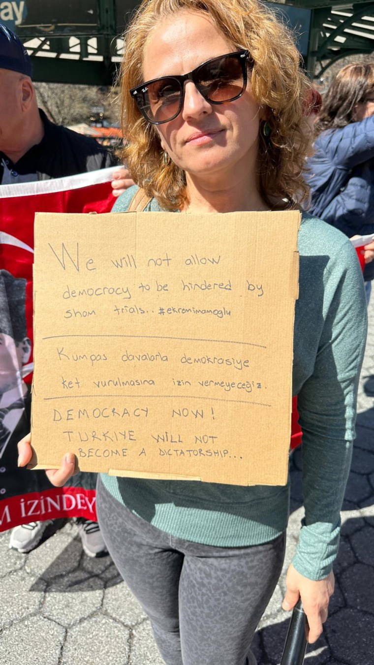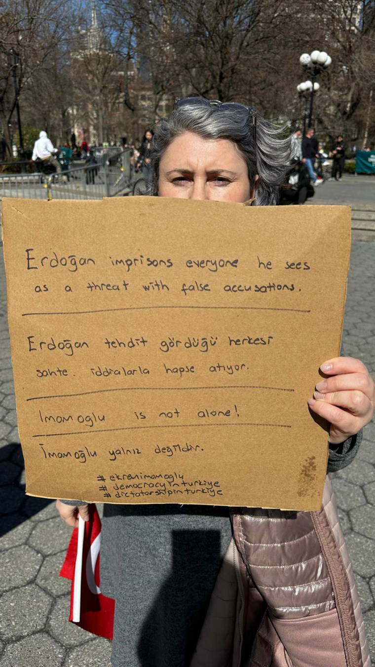 ABDPost'un aktardığına göre, New York’un ünlü Union Square Parkı'nda, İmamoğlu’nun gözaltına alınmasını protesto etmek amacıyla bir araya gelen Türk vatandaşları, “Haksızlığa boyun eğmeyeceğiz” diyerek demokrasi ve özgürlük taleplerini dile getirdi.
