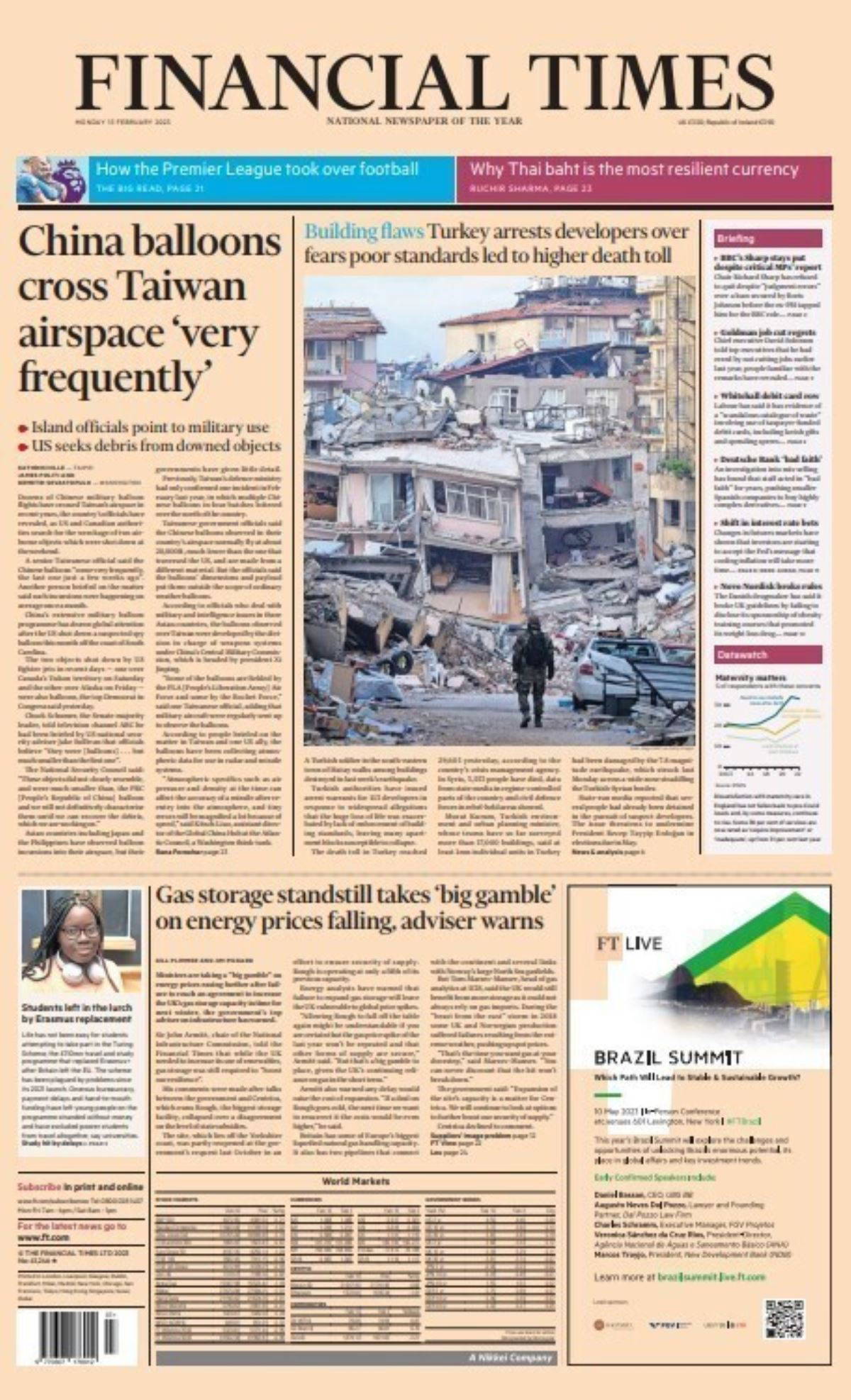 Financial Times, "Bina kusurları: Türkiye, kötü standartların ölü sayısının artmasına neden olduğu gerekçesiyle müteahhitleri tutukluyor" başlığını attı.