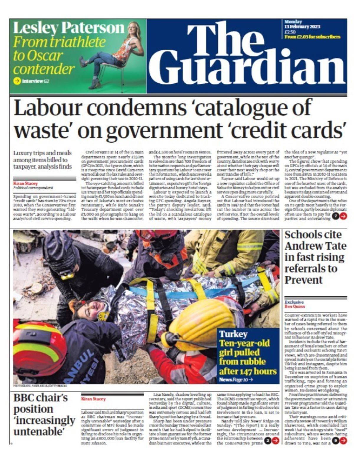 The Guardian ise "On yaşındaki kız çocuğu 147 saat sonra enkazdan çıkarıldı" başlığı atarak, adı Cudi olduğu öğrenilen 10 yaşındaki kızın Hatay'da 147 saat sonra enkaz altından kurtarılmasına atıfta bulundu.