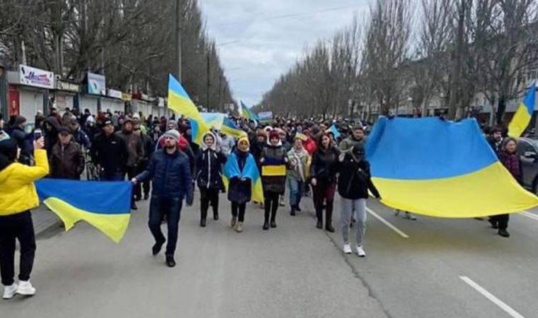 Bölgedeki Herson, Berdyansk, Starobilsk, Novopskov gibi işgal ya da kısmi işgal altındaki bir çok kentten, protesto gösterilerinin görüntüleri geliyor.