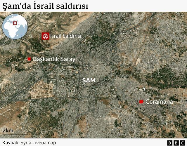İsrail, Suriye'nin başkenti Şam'da bulunan başkanlık sarayı yakınındaki bir noktaya hava saldırısı düzenlediğini duyurdu.
