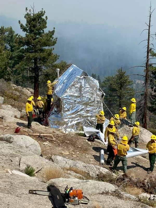 ABD’nin Kaliforniya eyaletindeki Tulare ilçesinde yer alan Sekoya Ulusal Parkı’ndaki yangınların giderek büyümesi üzerine itfaiye ekiplerinden, yangına alüminyum folyolu müdahale geldi.
