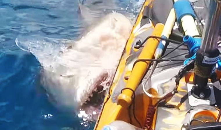 Oldukça iri bir cüsse ve jilet gibi keskin dişlere sahip olan bir kaplan köpekbalığı ile karşılaşan Haraguchi, anında tepki vererek ayağıyla köpekbalığının gözünü hedef almaya çalıştı ve onu uzaklaştırmayı başardı.