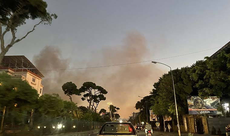 Başkent Beyrut'un güney bölgesinde yaklaşık 10 patlama sesinin ardından dumanlar yükseldi.