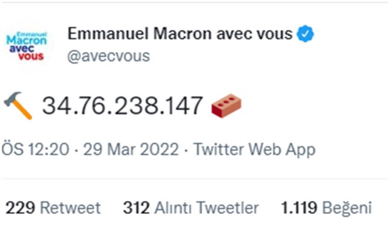 Ekip, "Emmanuel Macron avec vous" (Emmanuel Macron sizinle beraber) isimli Twitter hesabından, Minecraft sunucusuna ait bir IP adresi paylaştı.