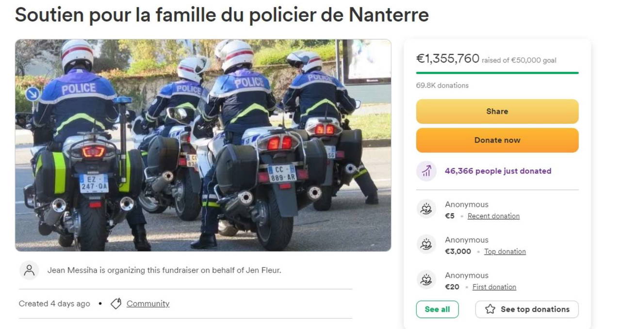 Öte yandan, ABD merkezli GoFundMe sitesi aracılığıyla Nahel'i öldüren polis memuruna destek için oluşturulan fona para yağdı.