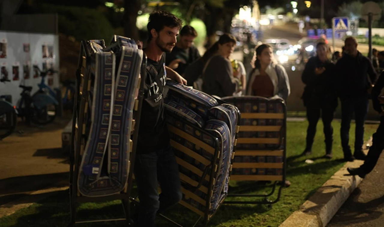 İsrailli aktivistler, yatakları, çubukları, brandaları taşıyarak bölgede tenteli bir çadır hazırladı. İsrail polisi ise Meclise çıkan yoldaki demir bariyerlerin arkasında güvenlik önlemi aldı. Bölgeye getirilen bir TOMA daha sonra alandan ayrıldı.