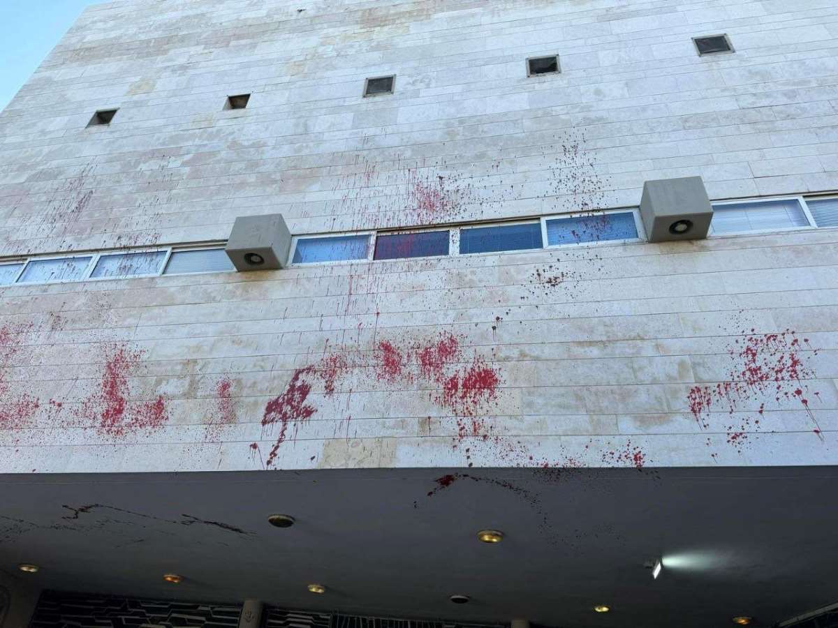 İsrail Başbakanı Binyamin Netanyahu'nun partisi Likud'un genel merkez binası, kırmızı sprey boya ile protesto edildi.