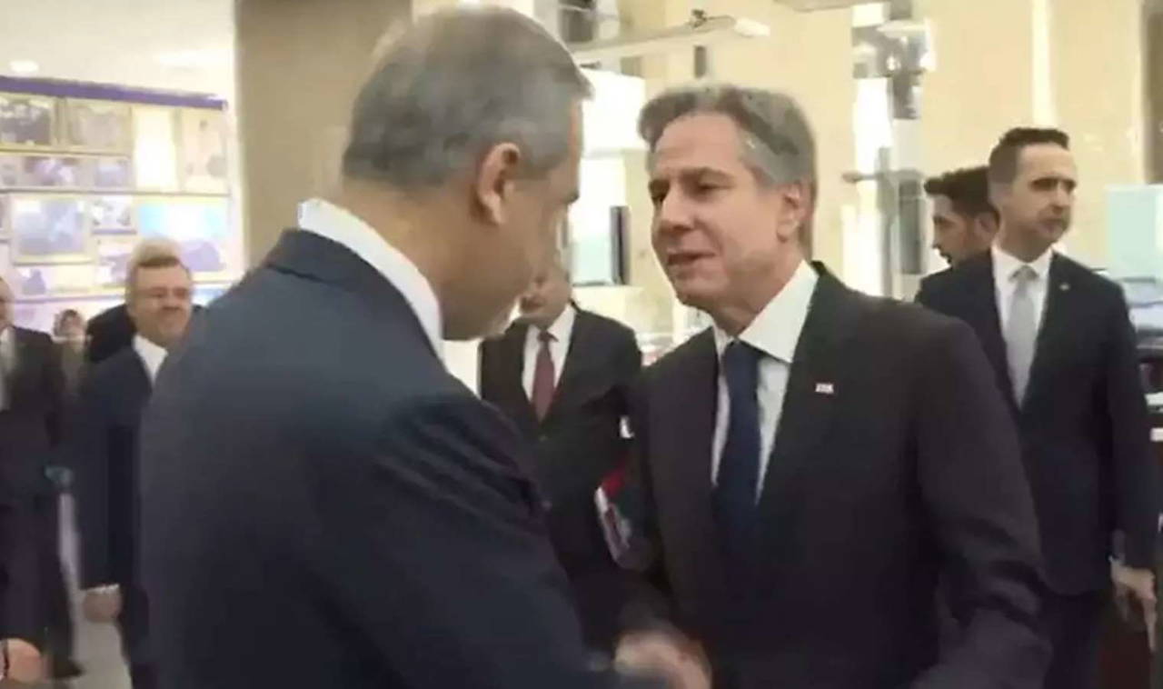 Görüşme öncesinde Blinken'ı karşılayan Bakan Fidan'ın, ABD'li mevkidaşının sarılmak istemesine karşın sadece elini sıkarak selamlaması sosyal medyanın gündemine oturdu.