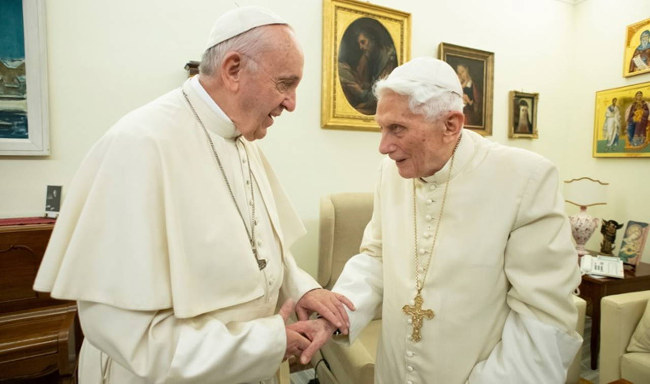 Mevcut Papa Francis ve Eski Papa Benedict (sağda)